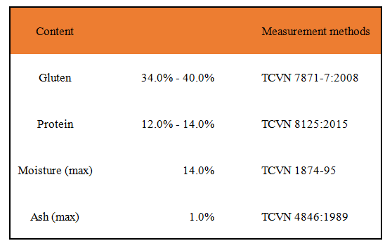 Raw material: The product uses imported wheat, with 100% flour, from wheat with high protein content for two products “ Ba con tôm và Ba con cá” . Wheat imported from Australia, America, and Canada